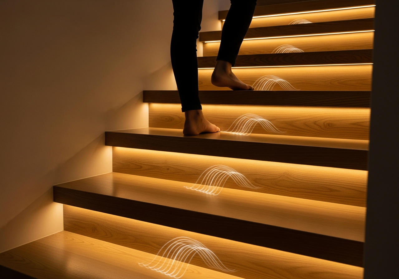 Oświetlenie schodowe z czujnikiem ruchu – jak połączyć oprawy LED w jednym ciągu?