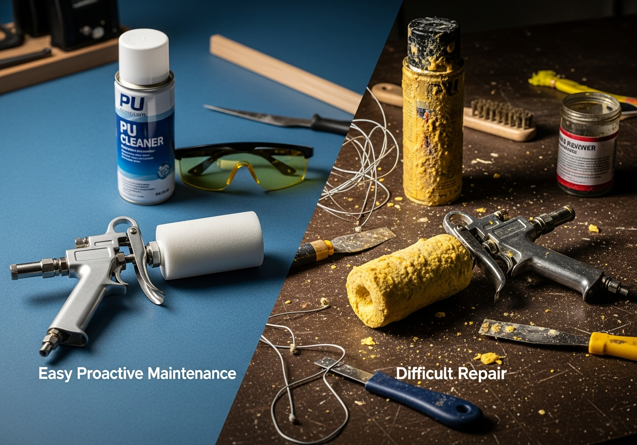 Możesz pomyśleć, że to strata czasu, ale uwierz mi – regularne czyszczenie pistoletu to czysty zysk. Zamiast kupować nowy sprzęt do każdego projektu, jeden zadbany pistolet posłuży Ci latami. Pomyśl o oszczędnościach! Poza tym, czyste narzędzie to precyzja. Bez zaschniętych resztek w środku masz pełną kontrolę nad strumieniem piany, a ona ląduje dokładnie tam, gdzie chcesz. No i ten spokój ducha, kiedy sięgasz po pistolet i wiesz, że zadziała od razu, bez żadnych niemiłych niespodzianek w stylu zapchanej dyszy.