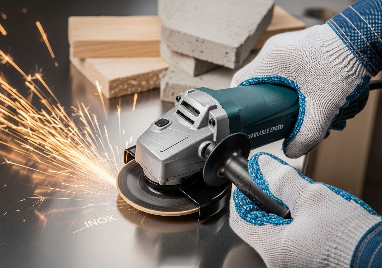 • Cięcie cienkich elementów: Możesz wejść na wyższe obroty (ok. 8 000 – 11 000 obr./min), ale tylko z cienkimi tarczami przeznaczonymi do INOX. Zawsze sprawdzaj limit RPM na tarczy!