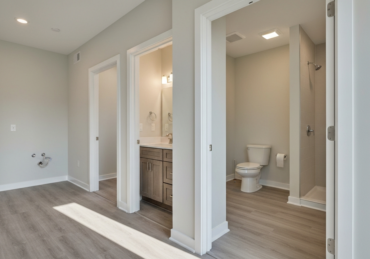 W ramach standardu wykończenia pod klucz, montaż drzwi wewnętrznych to oczywistość. Zazwyczaj wybierane są modele, które po prostu pasują do ogólnego stylu wnętrza i są dostępne w ofercie dewelopera. Dzięki nim zyskujesz prywatność i ładne oddzielenie pomieszczeń.